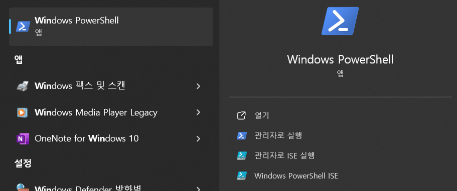 Windows Powershell을 관리자 권한으로 실행해 준 뒤에