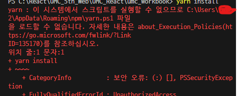 이후 yarn 실행이 잘 되는걸 확인할 수 있음!