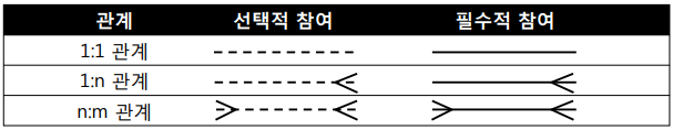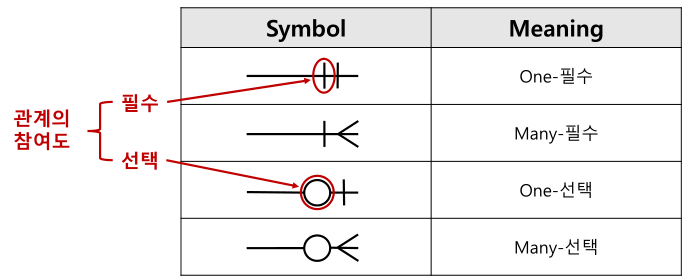 - 관계선 각 측의 끝자락에 기호를 표시한다.
