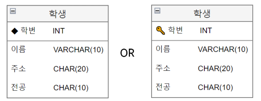 - 그리고 주 식별자는 유일한 속성이므로 다른 속성과의 명확한 구분을 위해 구분선을 두기도 한다.