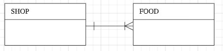 1 : N 관계 : 부모(SHOP)는 하나 이상의 자식(FOOD)이 있다.