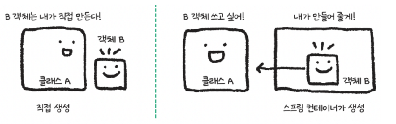 스프링 컨테이너가 B 객체를 만들어서 클래스 A에 줌