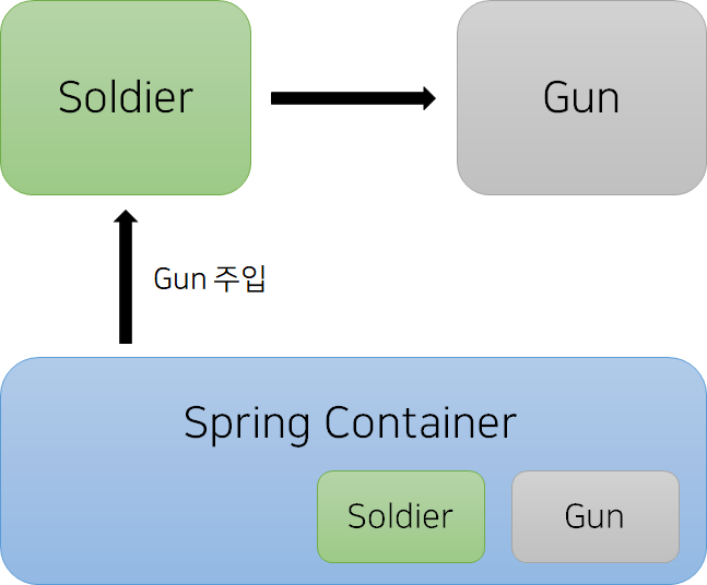 - 스프링 컨테이너에서 Soldier의 gun 멤버 변수에 Bean을 주입할 수 있게 해줌