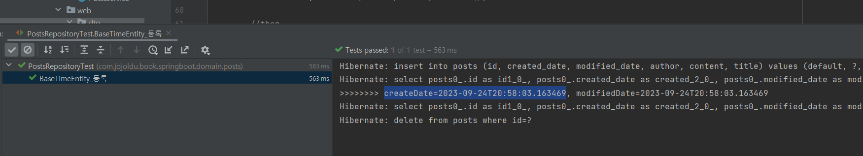 Posts 클래스가 BaseTimeEntity 상속받도록 변경