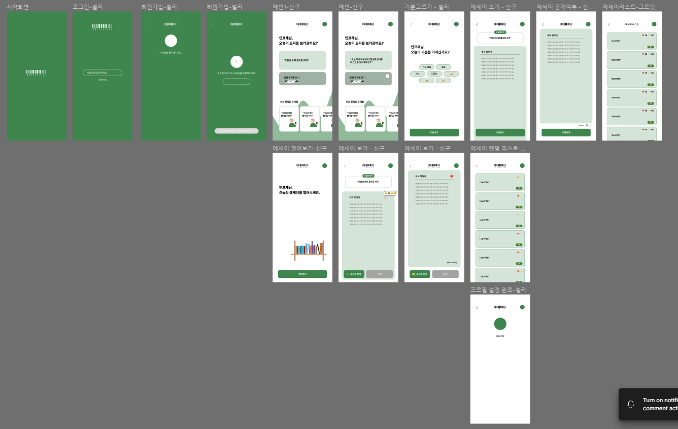이를 토대로 INFJ에게 하루에 하나씩 철학 문구를 랜덤으로 전송해주고, INFJ는 주제에 맞는 에세이를 쓰고, 하루에 하나씩 다른 INFJ의 에세이를 랜덤으로 공유받을 수 있는 서비스를 기획했다.