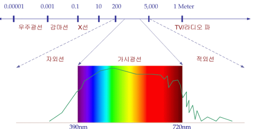 - 가시 광선 파장 : 390nm – 720nm