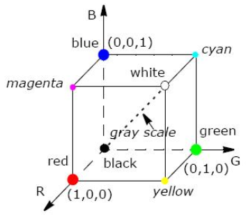 - 모델링에 있어 R, G, B를 x, y, z 축에 놓고 가중치에 따라 색을 정의