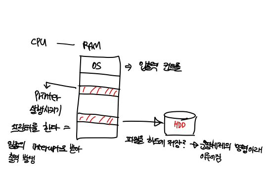 - 프린트를 시키기, 하드디스크에 파일 저장 불가