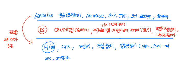 - → 하드웨어가 application을 직접적으로 실행시킬 수 없어 OS가 필요