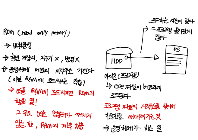 - 커널은 ROM이 RAM에 로드시킴 (커널도 OS이기때문)
