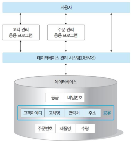 - 데이터를 DBMS가 접근/관리 → 응용 프로그램과 DB 사이 독립성 확보