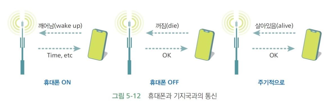 - 휴대폰과 기지국은 현재 위치 파악을 위해 주기적 통신함