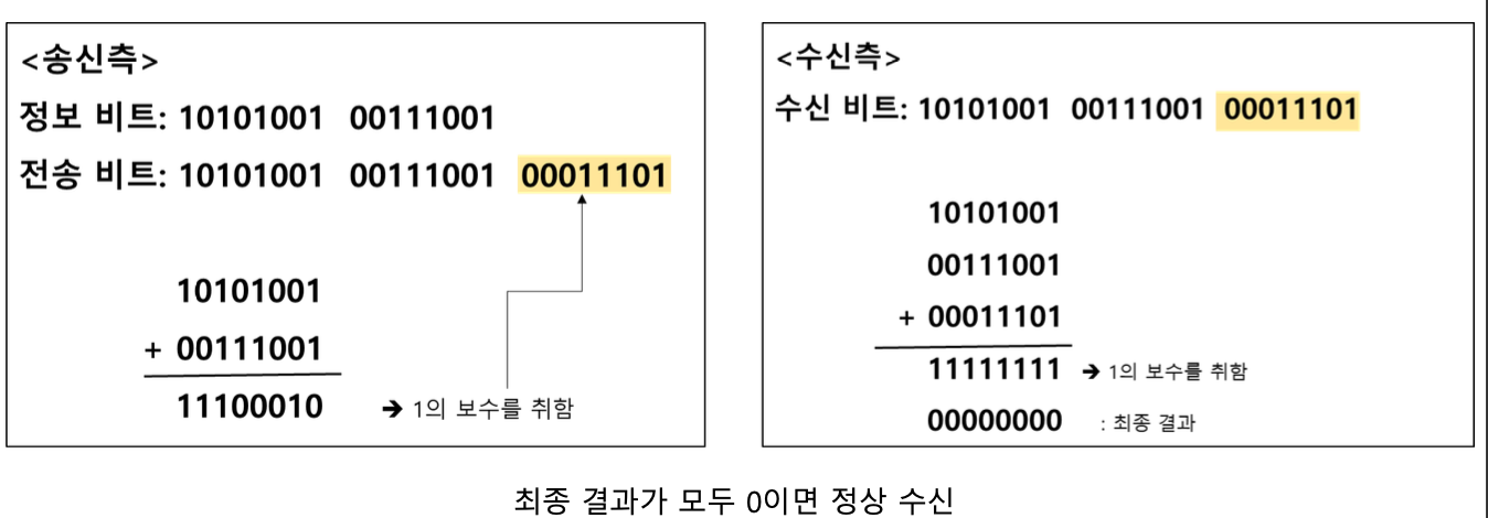 - 에러 검출: 패리티 검사, CRC, Checksum