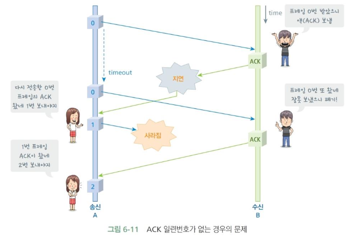 - 수신 B는 처음 보낸 프레임이 사라졌는지 몰라서, 두 번째 프레임을 첫 번째 프레임이라고 착각