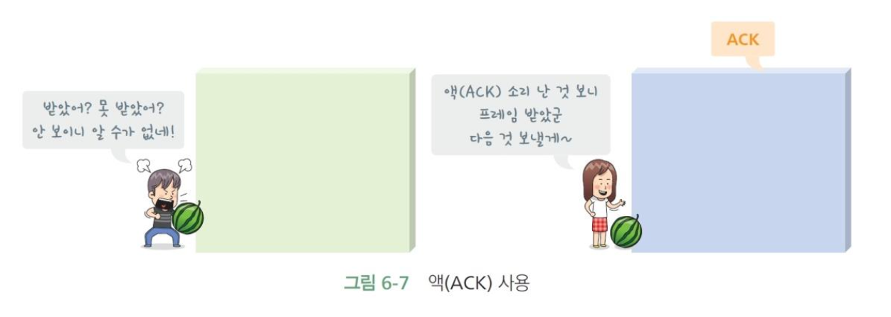 - 수신쪽은 프레임을 제대로 받으면 액(ACK) 소리를 침