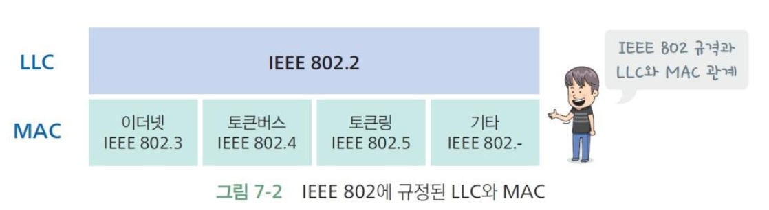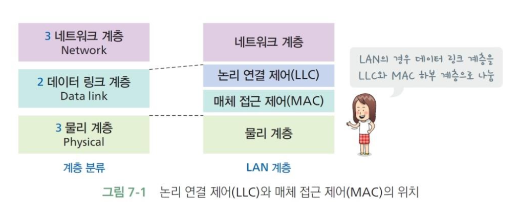 - LAN 계층 = (데이터 링크 계층) 은 LLC와 MAC로 나뉨