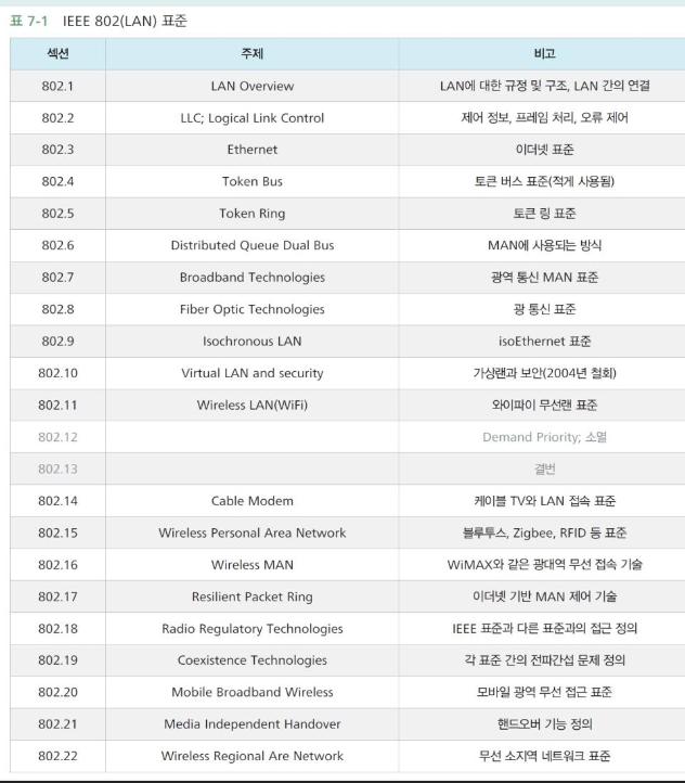 - LAN에 관련된 표준들은 IEEE (아이트리플E) 에 의해 표준화