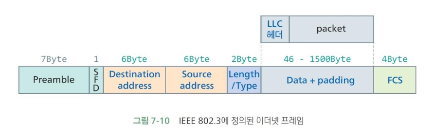 - 프리앰블: 프리앰블 7바이트 + SFD 1바이트 = 총 8바이트