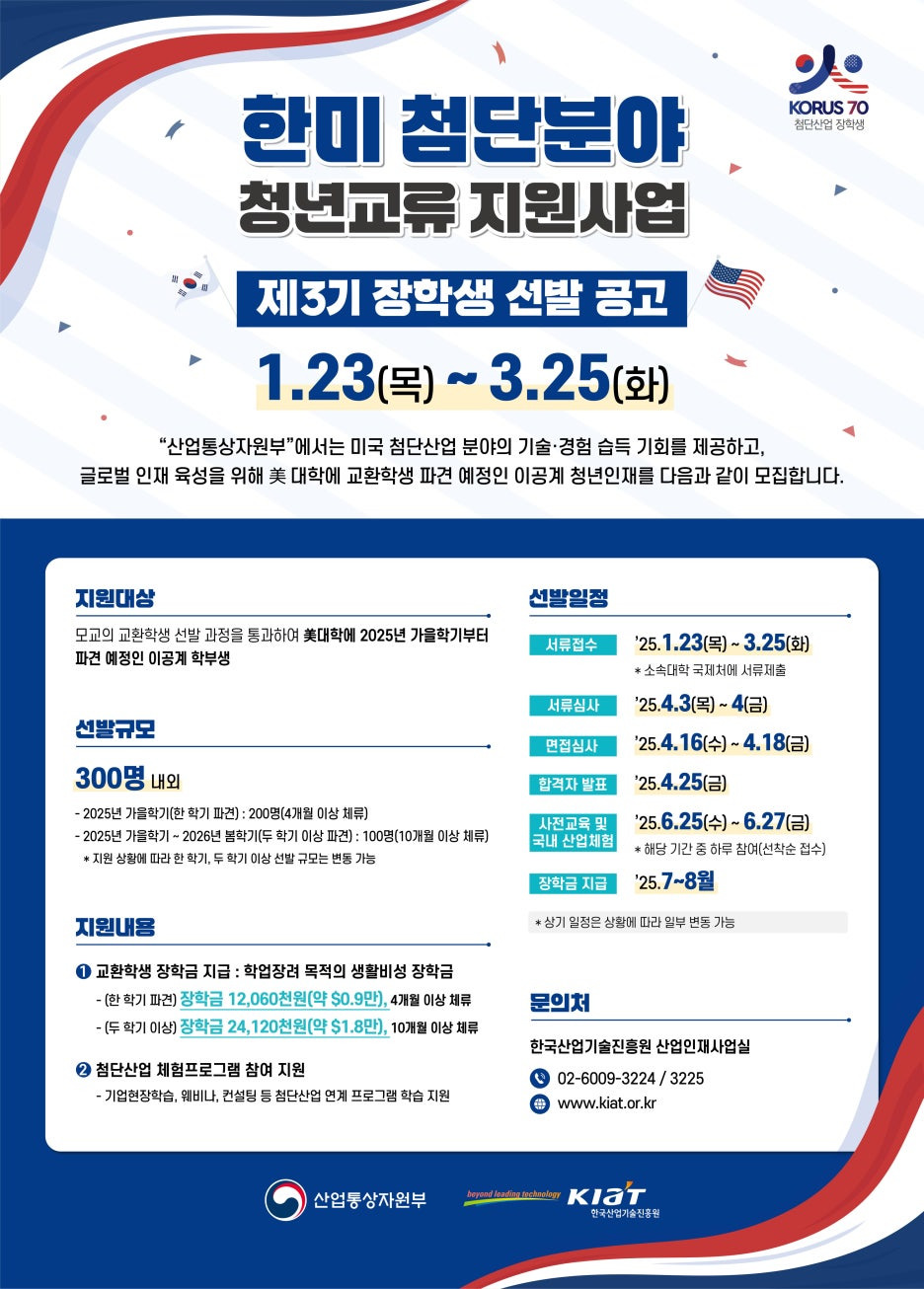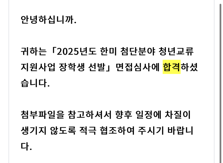 | [한미첨단분야청년교류지원사업] 2400만원 받고 교환학생 갔다오기?! (서류 합격 후기) (2) | 2025.06.03 |